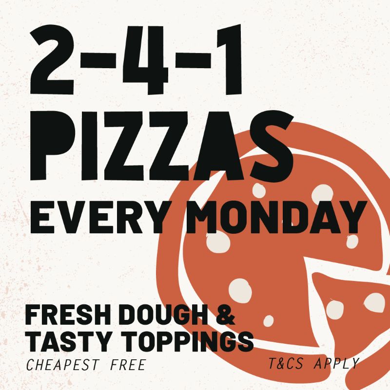 Make the most of your Monday with our 2-4-1 pizzas all day. Who said Monday was the worst day of the week?
